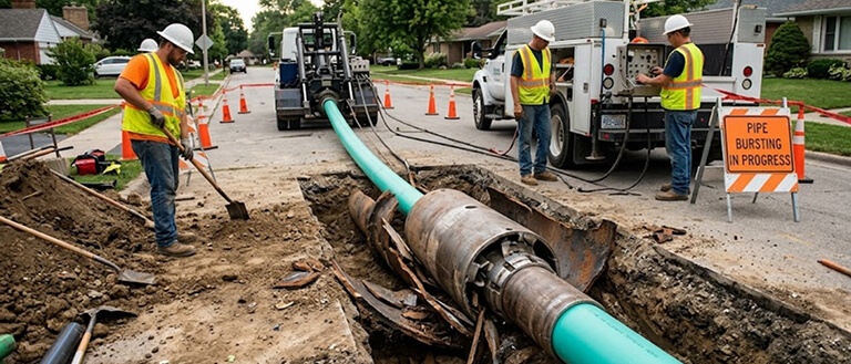 If the condition of the pipe is worse than the best solution, it should be replaced using the pipe-bursting technique with a bursting head.